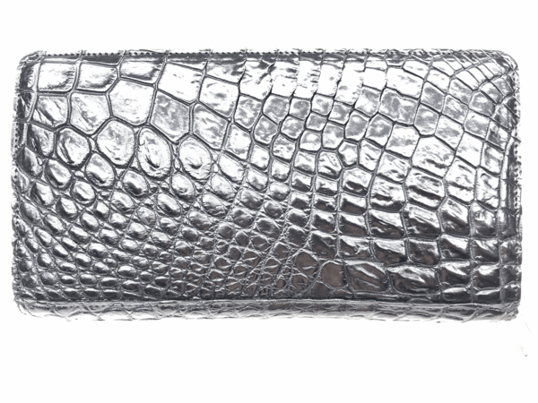 Crocodile skin wallet with one zip, made from genuine Siamese crocodile skin knee part. This is most budget model of crocodile skin wallet with zip, for manufacturing of this wallet used 4 small skins. Joints of skins made professionally. Used stainless zip, the fabric cloth on zip made same color what crocodile skin.