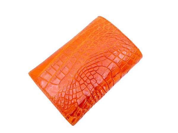 Crocodile leather wallet with zip from Siamese crocodile skin. For manufacturing of this wallet used high quality genuine crocodile leather. This crocodile skin wallet is not to spacious, its mean what this wallet not intended for storing and carry the cell phone, only cards and banknotes. This model of crocodile skin wallet can be used both men and women. This crocodile wallet will be loved by those of you who prefer minimalistic things. As a main decoration, on front side of wallet we can see unique texture of hornback part of hide of Siamese crocodile skin. On back side of wallet texture of leather becomes to the belly part. This wallet made from one whole piece of crocodile leather what increasing valuable of this wallet. This wallet closing on metal zip. Cloth part of zip colored by color of outer crocodile skin.