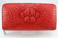 Genuine crocodile skin wallet with zip. The wallet of this model will appeal to those of you who prefer wallets of medium sizes, but with very good capacity. For manufacturing of this purse used genuine crocodile skin of Siamese crocodile. High-end leather manufactured skin soft and gentle. For producing wallet of this model used most rare and expensive skin belly part of hide of young Siamese crocodile. This wallet made from one whole piece of crocodile skin with unique unrepeatable texture of nape of Siamese crocodile. The uniqueness of this wallet is that only one wallet can be made from one hide of crocodile with such texture. Material of the lining is soft calfskin and cloth.