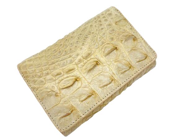 The wallet of this model made from genuine crocodile skin, used Siamese crocodile skin. This wallet made from one whole piece of most rare and expensive crocodile skin - belly part becomes to the side part of hide of crocodile. Used high quality crocodile leather, leather is soft and elastic. This model of wallet made from 2 independent compartments, each one compartment is equipped with a zipper. First compartment splitted by flat pocket with zip and contained two big flat pockets and cards compartments. Second compartment made from 4 smallest compartments intended for storage and carrying of essentials, phones, money, etc. Outside there is a pull-out strap. Material of the lining is soft cloth and calfskin.
