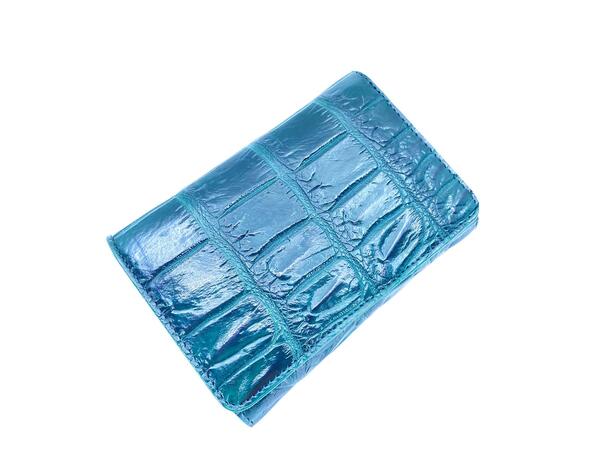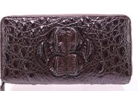 The wallet of this model made from genuine crocodile skin, used Siamese crocodile skin. This wallet made from one whole piece of crocodile skin with unique unrepeatable texture of nape of Siamese crocodile. The uniqueness of this wallet is that only one wallet can be made from one hide of crocodile with such texture. Used high quality crocodile leather, leather is soft and elastic. This model of wallet made from 2 independent compartments, each one compartment is equipped with a zipper. First compartment splitted by flat pocket with zip and contained two big flat pockets and cards compartments. Second compartment made from 4 smallest compartments intended for storage and carrying of essentials, phones, money, etc. Outside there is a pull-out strap. Material of the lining is soft cloth and calfskin.
