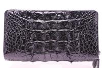 The wallet of this model made from genuine crocodile skin, used Siamese crocodile skin, tail part with aggressive texture of crocodile tail. Used high quality crocodile leather, leather is soft and elastic. This model of wallet made from 2 independent compartments, each one compartment is equipped with a zipper. First compartment splitted by flat pocket with zip and contained two big flat pockets and cards compartments. Second compartment made from 4 smallest compartments intended for storage and carrying of essentials, phones, money, etc. Outside there is a pull-out strap. Material of the lining is soft cloth and calfskin.