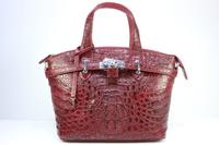 Bag for women from genuine crocodile leather. This bag is made from real crocodile, hide of Caiman crocodile. This bag is medium size. This bag will be like by ladies who like to wear bag in arm or forearm or on shoulder. Adjustable length shoulder belt with facing of crocodile skin - at set. On front surface of bag we see textured part of nape of caiman hide. Back side of bag has a texture of hornback of hide of caiman crocodile. Handles of bag made with crocodile skin. As an additional ornamentation of bag, on front surface located decorative strap with lock and key. On the top of bag sewed metal zip, using of steel zipper prolongs the service life of bag. Interior of bag made from genuine cow leather colored under the color of the bag. Bag inside created in one volume, there are two comfortable pockets for keys and other essential goods.
