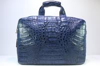 For manufacturing of this men's handbag use genuine crocodile leather, the natural hide of cayman crocodile. On the front surface of bag we can see natural and unique texture of hide of crocodile - back part with texture of nape and hornback of Cayman. On back surface used lower part of hide of Cayman with texture of lower part of hornback becomes to tail. Handles of bags made from crocodile skin. Adjustable by length shoulder belt with facing of crocodile skin - at kit. At the bottom of the bag is arranged a metal zipper, which can be opened to increase the volume of the bag. The interior of the bag made in soft cloth, sand colored. Inside of bag: One big zippered pocket, making other pocket for notebook or tablet. On opposite side other big zippered pocket. Also have some compartments for pens and phone.