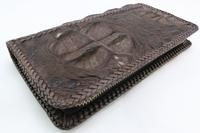 For manufacturing of this wallet used genuine crocodile hornback part of hide of Siamese crocodile. On surfaces of wallet we can clearly see unique, natural texture of hornback of crocodile. For additional ornamentation and also for a strength and durability applied braid outer edges and joints. Wallet equipped metal zipper. Inner trim of wallet is natural cow skin. Internal content: