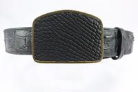 Mens crocodile leather hornback belts with unique buckle. Premium quality Crocodile belt. For manufacturing of this belt used genuine crocodile leather of siamese crocodile. Used part – hornback of hide of siamese. Base of belt is natural cow skin, belt stitched and glued along the entire length. Thereby the belt becomes more robust, flexible and durable. On the front surface of the belt we can clearly see the unique texture of the hornback of hide of Siamese crocodile. The unique buckle on this belt is a decoration of this crocodile belt. This belt can be used in jeans, or other pants.