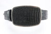 Mens crocodile leather hornback belts with unique buckle. Premium quality Crocodile belt. For manufacturing of this belt used genuine crocodile leather of siamese crocodile. Used part – hornback of hide of siamese. Base of belt is natural cow skin, belt stitched and glued along the entire length. Thereby the belt becomes more robust, flexible and durable. On the front surface of the belt we can clearly see the unique texture of the hornback of hide of Siamese crocodile. The unique buckle on this belt is a decoration of this crocodile belt. This belt can be used in jeans, or other pants.