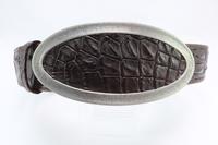Mens crocodile leather hornback belts with unique buckle. Premium quality Crocodile belt. For manufacturing of this belt used genuine crocodile leather of siamese crocodile. Used part – hornback of hide of siamese. Base of belt is natural cow skin, belt stitched and glued along the entire length. Thereby the belt becomes more robust, flexible and durable. On the front surface of the belt we can clearly see the unique texture of the hornback of hide of Siamese crocodile. The unique buckle on this belt is a decoration of this crocodile belt. This belt can be used in jeans, or other pants.