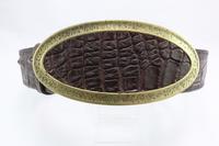 Mens crocodile leather hornback belts with unique buckle. Premium quality Crocodile belt. For manufacturing of this belt used genuine crocodile leather of siamese crocodile. Used part – hornback of hide of siamese. Base of belt is natural cow skin, belt stitched and glued along the entire length. Thereby the belt becomes more robust, flexible and durable. On the front surface of the belt we can clearly see the unique texture of the hornback of hide of Siamese crocodile. The unique buckle on this belt is a decoration of this crocodile belt. This belt can be used in jeans, or other pants.