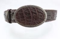Mens crocodile leather hornback belts with unique buckle. Premium quality Crocodile belt. For manufacturing of this belt used genuine crocodile leather of siamese crocodile. Used part – hornback of hide of siamese. Base of belt is natural cow skin, belt stitched and glued along the entire length. Thereby the belt becomes more robust, flexible and durable. On the front surface of the belt we can clearly see the unique texture of the hornback of hide of Siamese crocodile. The unique buckle on this belt is a decoration of this crocodile belt. This belt can be used in jeans, or other pants.