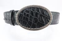 Mens crocodile leather hornback belts with unique buckle. Premium quality Crocodile belt. For manufacturing of this belt used genuine crocodile leather of siamese crocodile. Used part – hornback of hide of siamese. Base of belt is natural cow skin, belt stitched and glued along the entire length. Thereby the belt becomes more robust, flexible and durable. On the front surface of the belt we can clearly see the unique texture of the hornback of hide of Siamese crocodile. The unique buckle on this belt is a decoration of this crocodile belt. This belt can be used in jeans, or other pants.