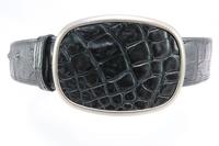 Mens crocodile leather hornback belts with unique buckle. Premium quality Crocodile belt. For manufacturing of this belt used genuine crocodile leather of siamese crocodile. Used part – hornback of hide of siamese. Base of belt is natural cow skin, belt stitched and glued along the entire length. Thereby the belt becomes more robust, flexible and durable. On the front surface of the belt we can clearly see the unique texture of the hornback of hide of Siamese crocodile. The unique buckle on this belt is a decoration of this crocodile belt. This belt can be used in jeans, or other pants.