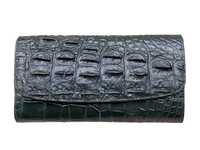 Genuine crocodile leather long wallet deep green color