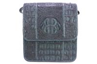 Genuine crocodile skin shoulder bag for men from texture hornback of Siamese crocodile with hand made braided edges