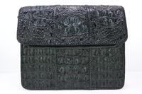 Genuine crocodile skin shoulder bag for men from texture hornback of Siamese crocodile with hand made braided edges