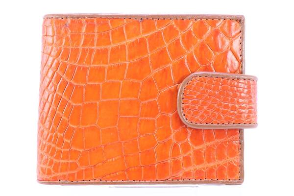 Wallet from genuine crocodile skin (Siamese crocodile skin). For manufacturing of wallets of this model used genuine skin of Siamese crocodile. Wallets of this model are equipped strap belt with button and compartment for coin. Each one of wallet has the unique texture of crocodile skin. On the front and back sides of wallet we can clearly see unique texture of genuine crocodile skin. On back side of wallet the convenient pocket is arranged.