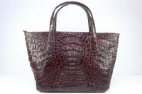 Bag for women from genuine crocodile leather. This bag is made from real crocodile, hide of Caiman crocodile. This bag is medium size. This bag will be like by ladies who like to wear bag in arm or forearm or on shoulder. Adjustable length shoulder belt with facing of crocodile skin - at set. On front surface of bag we see textured part of nape and part of hornback of hide of caiman. Back side of bag has a texture of hornback of hide of caiman crocodile. Handles of bag made with crocodile and cow skin. On the top of bag sewed metal zip, using of steel zipper prolongs the service life of bag. Interior of bag made from genuine cow leather colored under the color of the bag. Bag inside created in one volume, there are two comfortable pockets for keys and other essential goods.