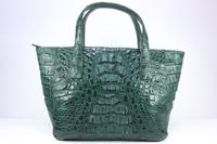 Bag for women from genuine crocodile leather. This bag is made from real crocodile, hide of Caiman crocodile. This bag is medium size. This bag will be like by ladies who like to wear bag in arm or forearm or on shoulder. Adjustable length shoulder belt with facing of crocodile skin - at set. On front surface of bag we see textured part of nape and part of hornback of hide of caiman. Back side of bag has a texture of hornback of hide of caiman crocodile. Handles of bag made with crocodile and cow skin. On the top of bag sewed metal zip, using of steel zipper prolongs the service life of bag. Interior of bag made from genuine cow leather colored under the color of the bag. Bag inside created in one volume, there are two comfortable pockets for keys and other essential goods.