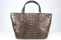 Bag for women from genuine crocodile leather. This bag is made from real crocodile, hide of Caiman crocodile. This bag is medium size. This bag will be like by ladies who like to wear bag in arm or forearm or on shoulder. Adjustable length shoulder belt with facing of crocodile skin - at set. On front surface of bag we see textured part of nape and part of hornback of hide of caiman. Back side of bag has a texture of hornback of hide of caiman crocodile. Handles of bag made with crocodile and cow skin. On the top of bag sewed metal zip, using of steel zipper prolongs the service life of bag. Interior of bag made from genuine cow leather colored under the color of the bag. Bag inside created in one volume, there are two comfortable pockets for keys and other essential goods.