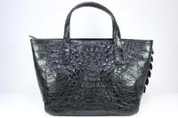 Bag for women from genuine crocodile leather. This bag is made from real crocodile, hide of Caiman crocodile. This bag is medium size. This bag will be like by ladies who like to wear bag in arm or forearm or on shoulder. Adjustable length shoulder belt with facing of crocodile skin - at set. On front surface of bag we see textured part of nape and part of hornback of hide of caiman. Back side of bag has a texture of hornback of hide of caiman crocodile. Handles of bag made with crocodile and cow skin. On the top of bag sewed metal zip, using of steel zipper prolongs the service life of bag. Interior of bag made from genuine cow leather colored under the color of the bag. Bag inside created in one volume, there are two comfortable pockets for keys and other essential goods.
