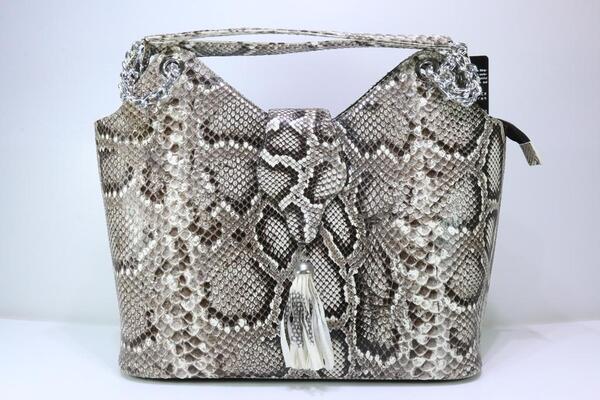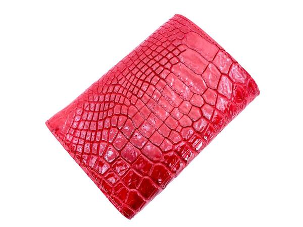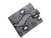 For manufacturing of this folded wallet used genuine python leather. Wallet consist from, banknotes compartments, card slots coin pocket and outer half-belt. Lining material calfskin.