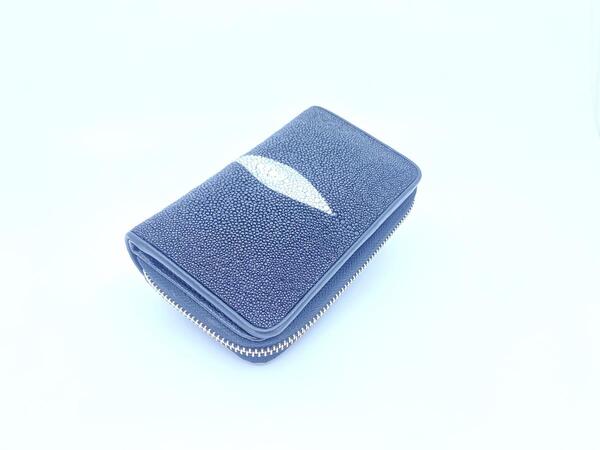For manufacturing of this wallet used genuine stingray leather. Wallet decorated by inserts from raw stone white color. Stingray skin wallet consist from: banknotes compartments, zip pocket, card slots. Lining material calfskin.