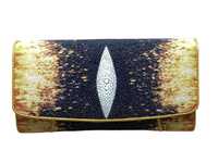 For manufacturing of this wallet used genuine stingray leather. Stingray skin wallet consist from: banknotes compartments, zip pocket, card slots. Lining material calfskin.