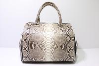Python skin ladies handbag. Model of this handbag made from genuine python skin, with unrepeatable natural pattern of hides of python. For manufacturing of this bag used real python skin, belly part of hide. Lovely handbag made from real python leather. Front and back side of handbag, sides and handles made from genuine python skin. As an decoration of handbag on sides of bag decorative zippers are located. At the top of handbag located zipper lock. Inside of this handbag, flat pocket divided the bag on two compartments. Inside of bag are two pockets, pocket with zipper and side flat pocket. Material for lining of bags is soft cloth sandy color.