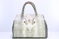 Handbag for lady made from genuine cobra leather with head of cobra. For manufacturing of this bags used genuine hides of cobra, with natural pattern of skin. As the main decoration of bag on front surface of bag located genuine head of cobra. As an additional decoration bag on sides of bag decorative zipper are located. At the top of handbag zipper-lock is located Material lining of bags is soft cloth sandy color. The inner volume of the bag is divided into 2 parts by a flat pocket with a zipper. Inside of bag are two pockets, with zipper and flat.