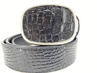 Handcrafted crocodile leather belt made from genuine Siamese crocodile skin, smooth part of crocodile knee. This belt made from genuine Siamese crocodile skin soft and supple used crocodile leather has a small cell texture and pattern of skin of crocodile knee. The top surface of the belt made from crocodile skin, the skin is glued together from few pieces, but gluing of skin made very professionally and almost invisible. As a base for this belts used genuine cow skin. This handcrafted crocodile belt can be used both men and women, but mainly this model targeted for men. Belt equipped rectangular shape buckle with rounded corners antique silver color with decoration from crocodile skin on main surface, what fixing to the belt through crocodile leather strap half belt.