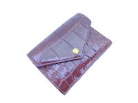 This is new model of vertical crocodile skin wallet, this woman's type of wallet. Wallets of this model keep up with the times, small compartment for cash, a few card slots, very cozy and convenient. On the side of wallet has flap with stainless steel button. For manufacturing of this wallet used genuine crocodile leather belly part. On the left side of wallet has convenient pocket with zip, this pocket can be used as a coin or pocket for another small items.