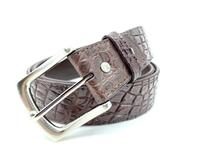 Crocodile leather belt made from genuine Siamese crocodile skin, smooth part of crocodile knee. This belt made from genuine Siamese crocodile skin soft and supple used crocodile leather has a large cell texture and pattern of skin of crocodile knee. The top surface of the belt made from crocodile skin, the skin is glued together from few pieces, but gluing of skin made very professionally and almost invisible. As a base for this belts used genuine cow skin. Belt equipped stainless steel simple pin buckle through crocodile leather strap half belt. This handcrafted crocodile belt can be used both men and women, but mainly this model targeted for men.
