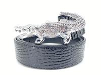 Handcrafted crocodile leather belt made from genuine Siamese crocodile skin, smooth part of crocodile knee. This belt made from genuine Siamese crocodile skin soft and supple used crocodile leather has a small cell texture and pattern of skin of crocodile knee. The top surface of the belt made from crocodile skin, the skin is glued together from few pieces, but gluing of skin made very professionally and almost invisible. As a base for this belts used genuine cow skin. This handcrafted crocodile belt can be used both men and women, but mainly this model targeted for men. Belt equipped buckle in the form of a crocodile fixing to the belt through crocodile leather strap half belt.