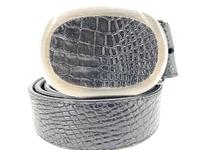 Handcrafted crocodile leather belt made from genuine Siamese crocodile skin, smooth part of crocodile knee. This belt made from genuine Siamese crocodile skin soft and supple used crocodile leather has a small cell texture and pattern of skin of crocodile knee. The top surface of the belt made from crocodile skin, the skin is glued together from few pieces, but gluing of skin made very professionally and almost invisible. As a base for this belts used genuine cow skin. This handcrafted crocodile belt can be used both men and women, but mainly this model targeted for men. Belt equipped rectangular shape buckle with rounded corners antique silver color with decoration from crocodile skin on main surface, what fixing to the belt through crocodile leather strap half belt.