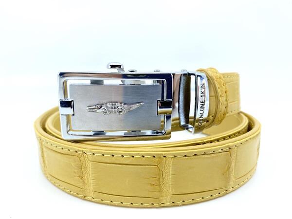 Handcrafted crocodile leather belt, made from knee part of crocodile skin with small cell texture and pattern of skin of knee.