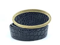 Ellipse shape buckle antique copper color with decoration from crocodile skin on main surface. Size of buckle 12 x 5.5 cm.