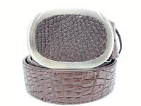 Handcrafted crocodile leather belt, made from knee part of crocodile skin with large cell texture and pattern of skin of knee.