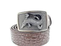 Rectangular shape buckle with rounded corners antique silver color with crocodile on the front surface. Size of buckle 7.5 x 5 cm.
