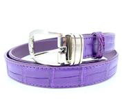 Handcrafted Siamese crocodile skin belt for women. Crocodile belly part belt for women. For manufacturing of this belt used genuine Siamese crocodile leather, skin soft and supple. For manufacturing of belts of this model used tail part of crocodile from belly side. For a basement for this belt used calfskin. Belt equipped stainless steel simple pin buckle with fixing to the belt by steel clamp.