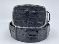 Handcrafted crocodile leather belt made from genuine Siamese crocodile hornback skin. As a main decoration on surface of belt used hornback crocodile skin, as a basement for this belts use genuine calfskin. Crocodile strap have a gluing of skin, gluing made very professionally and almost invisible. This crocodile belt can be used both men and women, but mainly this model targeted for men. Belt equipped rectangular shape buckle with rounded corners antique silver color with decoration from crocodile skin on main surface, what fixing to the belt through crocodile leather strap half belt.