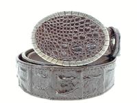 Handcrafted crocodile leather belt made from genuine Siamese crocodile hornback skin. As a main decoration on surface of belt used hornback crocodile skin, as a basement for this belts use genuine calfskin. Crocodile strap have a gluing of skin, gluing made very professionally and almost invisible. This crocodile belt can be used both men and women, but mainly this model targeted for men. Belt equipped buckle in the form of ellipse with notching, what fixing to the belt through crocodile leather strap half belt.