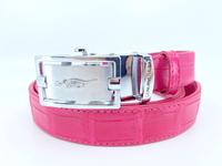 Handcrafted Siamese crocodile skin belt. Crocodile belly part belt for women. For manufacturing of this belt used genuine Siamese crocodile leather, skin soft and supple. For manufacturing of belts of this model used tail part of crocodile from belly side. For a basement for this belt used calfskin. Belt equipped stainless steel automatic buckle with crocodile on main surface.