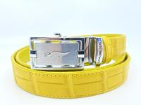 Handcrafted Siamese crocodile skin belt. Crocodile belly part belt for women. For manufacturing of this belt used genuine Siamese crocodile leather, skin soft and supple. For manufacturing of belts of this model used tail part of crocodile from belly side. For a basement for this belt used calfskin. Belt equipped stainless steel automatic buckle with crocodile on main surface.
