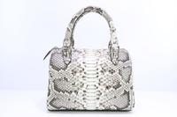 Valise for ladies made from python skin. For manufacturing bags of this model used genuine python skin with natural unrepeatable pattern of hide of python skin. Model of this bag is classic valise for women. At the top of bag zipper located. Front, back side of handbag, sides and handles are made from genuine python skin. Material for lining of bags is soft cloth sandy color. At the top of handbag zipper located. Left and right of the zipper there are two flat convenient pockets. The bag inside made in one volume. Inside of bag are two pockets, pocket with zipper and side flat pocket. Chain as a shoulder strap, in set.