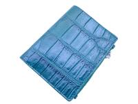 One more popular and convenient model of crocodile skin vertical wallet with outer zip pocket. Women and men can use this wallet. For manufacturing of this wallet, we used belly part of genuine Siamese crocodile skin. Wallet made from one whole piece of crocodile skin, what increase value of this wallet. Crocodile skin soft, elastic, and high quality of dressing. Vertical bifold from crocodile skin. Wallet consist from; two banknotes compartment, four card slots, two sides pocket with assess from middle part of wallet, on the side of the wallet has convenient pocket with zip what can be used as a pocket for coins or another small items. Soft calfskin and textile used as lining material.