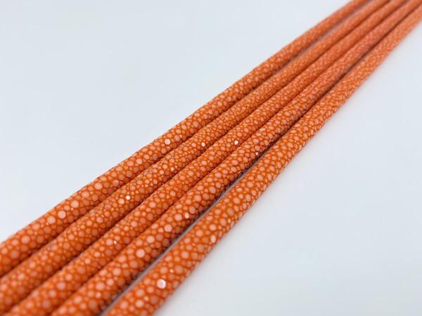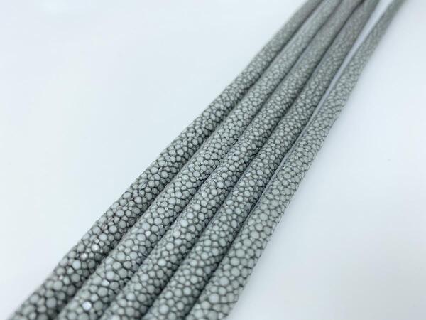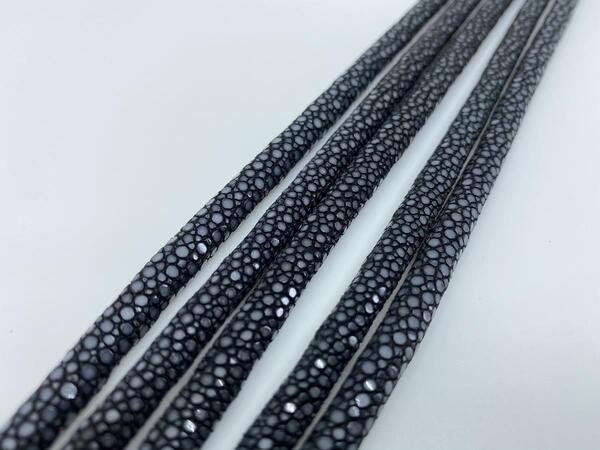 This cords made from genuine polished stingray leather. In our shop available stingray-leather cords in different colors, diameters from 4mm up to 10mm and variety length from 20cm up to 50cm. The stingray skin cord with diameter 4mm can be from 20 up to 40cm of length. Maximum length of cords 4mm can be no longer then 40cm. This limit is due to the physical characteristics of the stingray's skin.