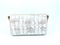 Clutch from crocodile skin for lady. Crocodile skin purse for lade made from genuine Siamese crocodile skin. Purse of this model has a detachable shoulder belt (metal chain) and can be used as a small handbag and as a shoulder bag. On the top of purse has a zip. Purse made in one volume. For manufacturing of purse of this model used genuine Siamese crocodile leather, tail part with a unique texture.