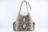 Handbag for lady made from genuine python skin. For manufacturing of this bags used genuine hides of python back part, with natural pattern of skin. This model of bags will be loved by ladies who like to carry on their bags on the shoulder. On the main and back surfaces of python handbag we can clearly see unique texture of back of python hide. On the left and right surfaces of bag made convenient pockets with flap. At the top of handbag located zipper. To the left and to the right of zipper comfortable flat pockets are arranged. Inner of bag made from cloth. The bag is made in one volume. Inside of bag are two pockets, with zipper and flat pocket.