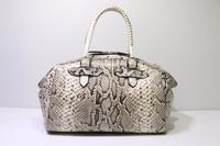Women’s handbag made from python skin. Model of this handbag made from genuine python skin, with unrepeatable natural pattern of hides of python. For manufacturing of this bag used real python skin, back part of hide. Lovely handbag made from real python leather. Front and back side of handbag, sides and handles made from genuine python skin. As an extra decoration of handbag handles of bag decorated by simple pin stainless buckles and straps. At the top of handbag located zipper lock. The handbag inside made in one volume. Inside of bag are two pockets, pocket with zipper and side flat pocket. Material for lining of bags is soft cloth sandy color.