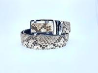 Python leather belt made from genuine python skin back part of python hide with unique and natural pattern of python hide. Belt equipped automatic buckle with python skin. This model of belts can be used both women and men. As a basement for this belt used soft calfskin.